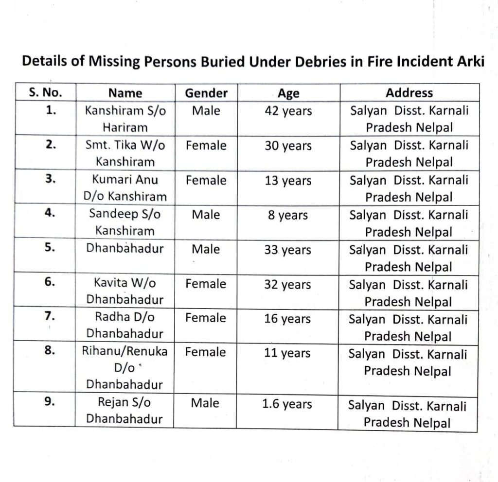 अर्की में आज एनडीआरएफ और डॉग स्क्वायड की टीमें शुरू करेगी सर्च अभियान,अग्निकांड से लापता है 9 लोग