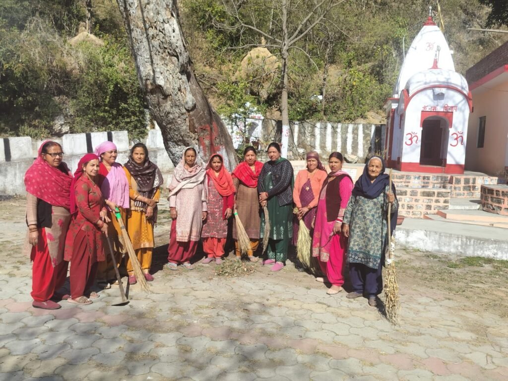 बाघल टुडे (अर्की):- उपमण्डल अर्की के देवरा पंचायत की महिला मंडल जखौली द्वारा सफाई अभियान चलाया गया। इस दौरान मंडल की महिलाओं ने जखौली गांव के शिव मंदिर परिसर के आस पास फैले कूड़े कर्कट को इकठ्ठा कर कूड़ेदान में डाला। महिला मंडल जखौली की प्रधान रोशनी भारद्वाज ने कहा कि शिवरात्रि से पूर्व आज सभी महिलाओं ने मंदिर परिसर के आसपास स्वच्छता अभियान चलाया।
