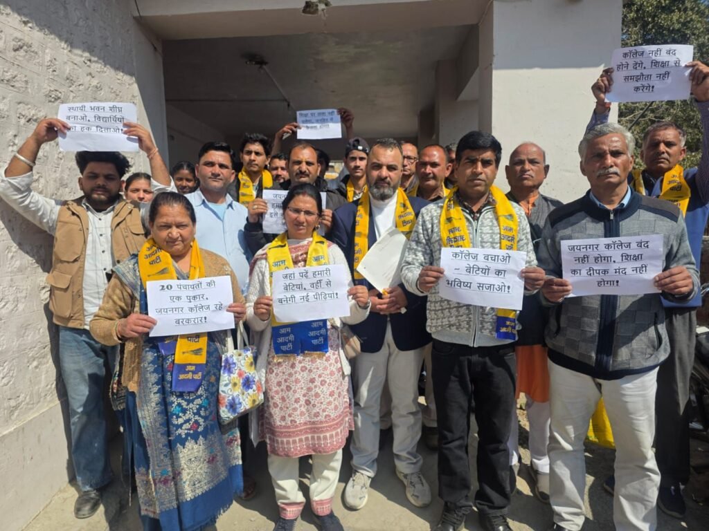 बाघल टुडे (अर्की):- आम आदमी पार्टी अर्की इकाई द्वारा जयनगर कॉलेज को बंद करने के लिए सरकार में प्रस्ताव लाने की सोशल मीडिया पर चल रही चर्चाओं के विरोध में उप-मंडल अधिकारी अर्की को ज्ञापन सौंपा गया। इस विरोध कार्यक्रम में पार्टी कार्यकर्ता, जयनगर कॉलेज के विद्यार्थी, स्थानीय लोग तथा क्षेत्र के बच्चे बड़ी संख्या में शामिल हुए। सभी ने आम आदमी पार्टी के बैनर तले शांतिपूर्ण तरीके से अपनी आवाज बुलंद की।