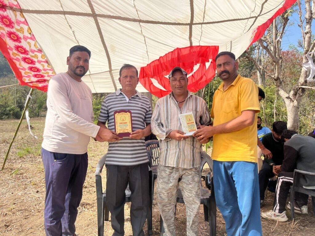 बाघल टुडे (अर्की):- उपमण्डल के देवरा पंचायत के गांव जखौली में भद्रकाली रोवर्स जखौली द्वारा इन दिनों वाई.एम.ए मेमोरियल क्रिकेट प्रतियोगिता का आयोजन किया जा रहा है। इस मौके पर रविवार को समाजसेवी दुनीचंद गौतम ने बतौर मुख्यातिथि शिरकत की। वहीं देवी चंद विशेष अतिथि के रूप में उपस्थित रहे। आयोजन समिति की ओर से दोनों अतिथियों को स्मृति चिन्ह देकर सम्मानित किया गया।